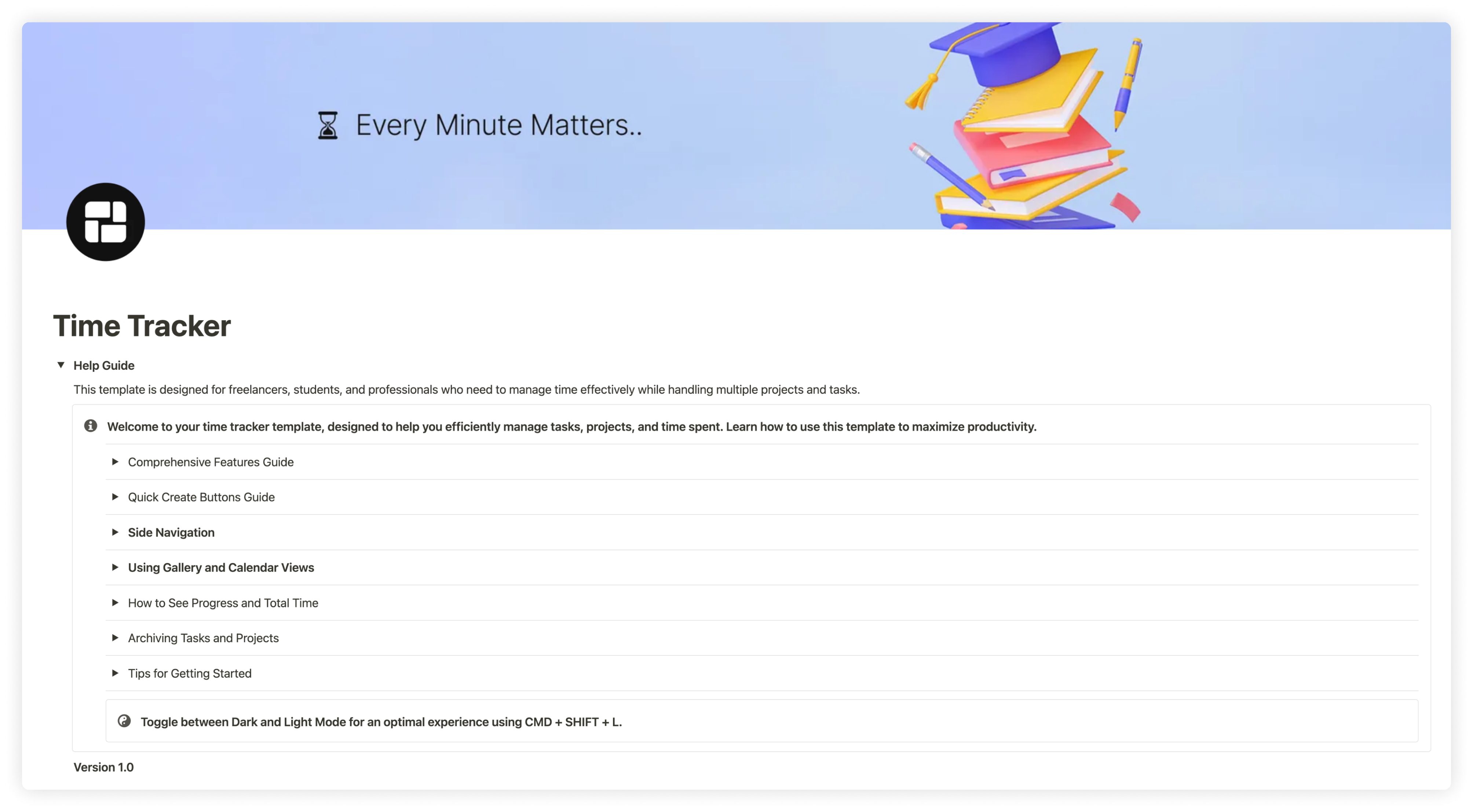 Whether you’re a freelancer billing clients or a student balancing assignments, this Notion Time Tracker simplifies the way you manage time and projects.