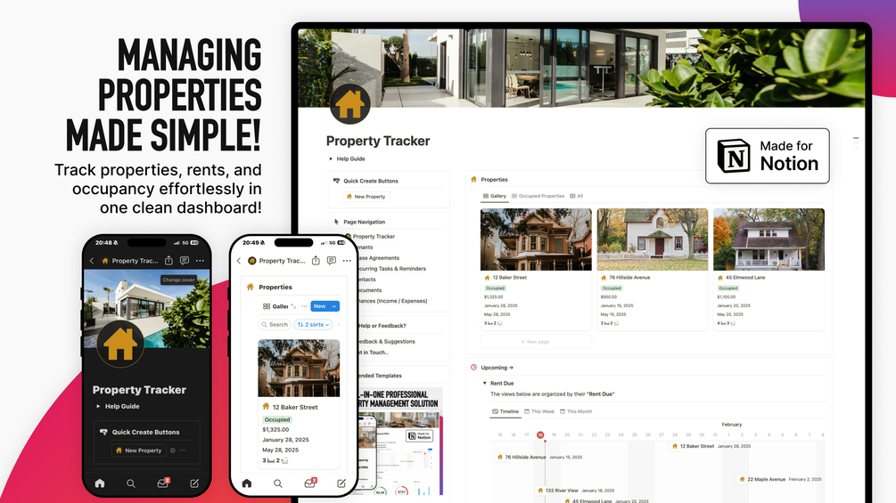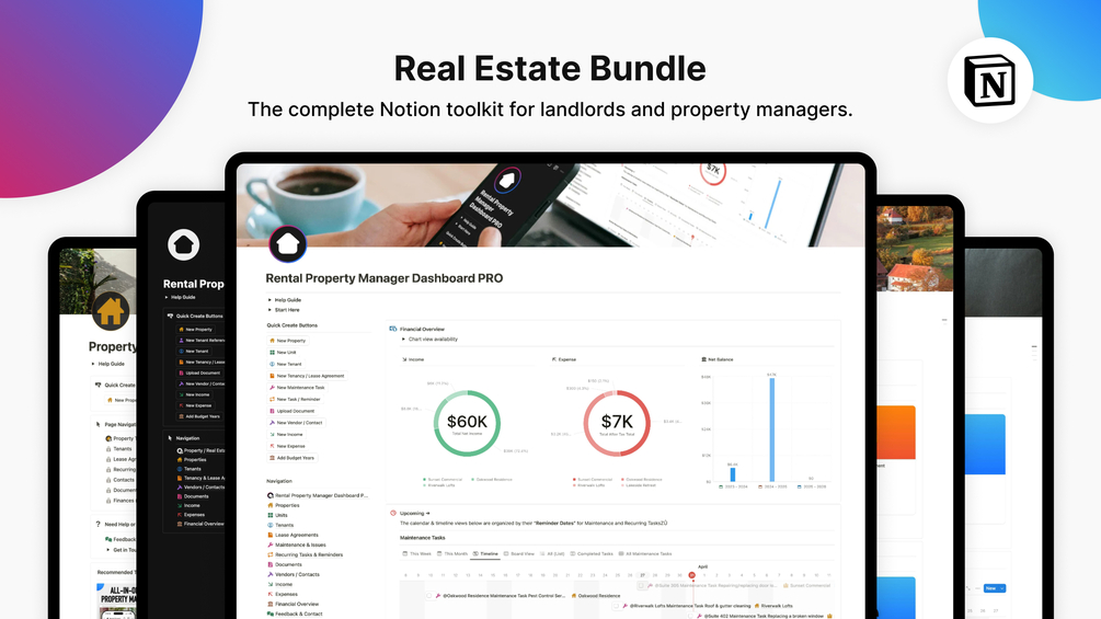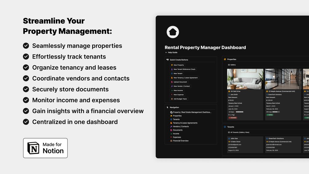 A premium bundle of Notion templates to manage your rental properties, tenants, and leases - all in one organized system.