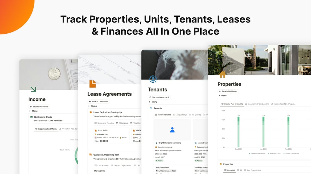 - Property managers needing a central place to track tenants, leases, income, and maintenance