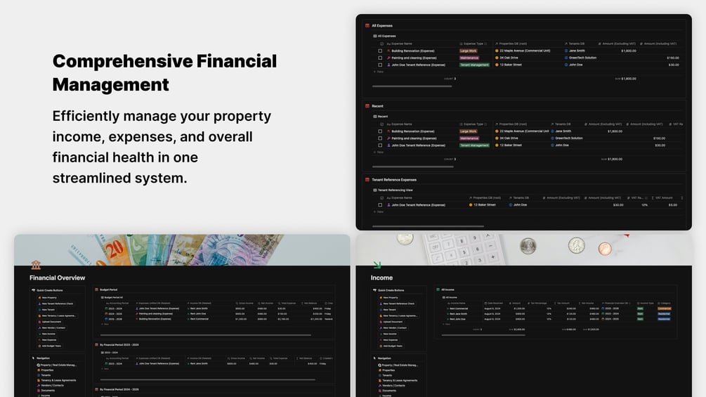 - Income & Expense Tracking: Monitor rental income and expenses for each property to maintain profitability.